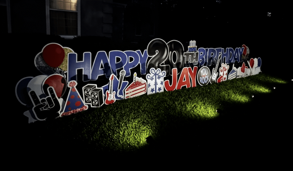In the event of inclement weather, we may not be able to set up any lawn displays. If this occurs, we will promptly refund the full rental price. Inclement weather includes lightning, thunderstorms, heavy snow, ice (severe frozen yard), high wind over 30 mph, heavy rain/hail, tornadoes, and any other Act of God that would put us or our lawn display in danger. Please know that it must be extreme weather for us to not deliver. Rain will never be the cause of a cancellation, and the wind must be severe enough to impact the stability of the signs. We reserve the right to pull a greeting early if hazardous weather conditions arise.