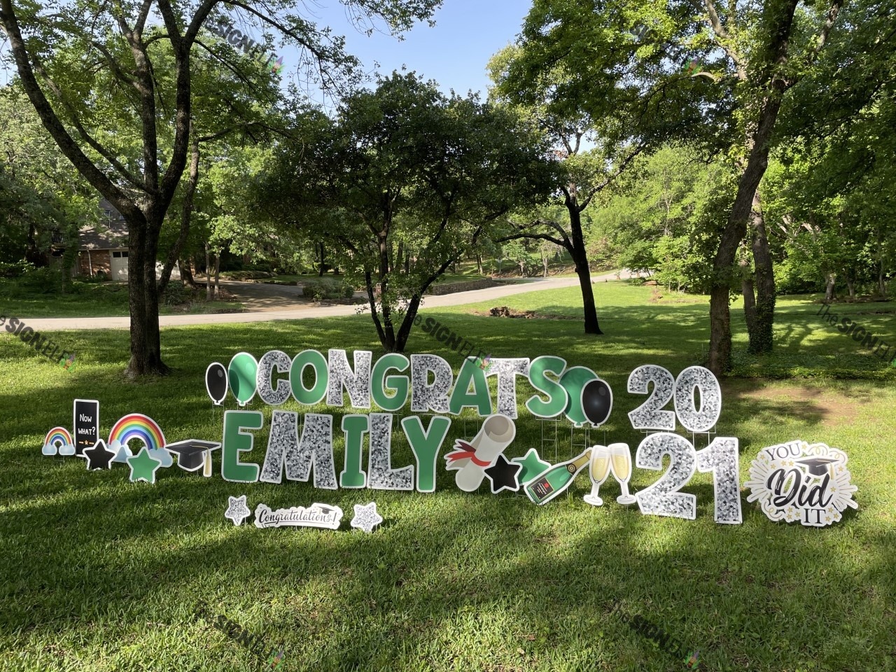Graduation Yard Signs are extremely popular in May/June and December to celebrate this milestones. We have a ton of neat Graduation Yard Sign images geared for high school graduations to college graduations. We love getting pictures back of the graduate in front/behind of their Graduation Yard Signs. These yards signs create a lasting memory!